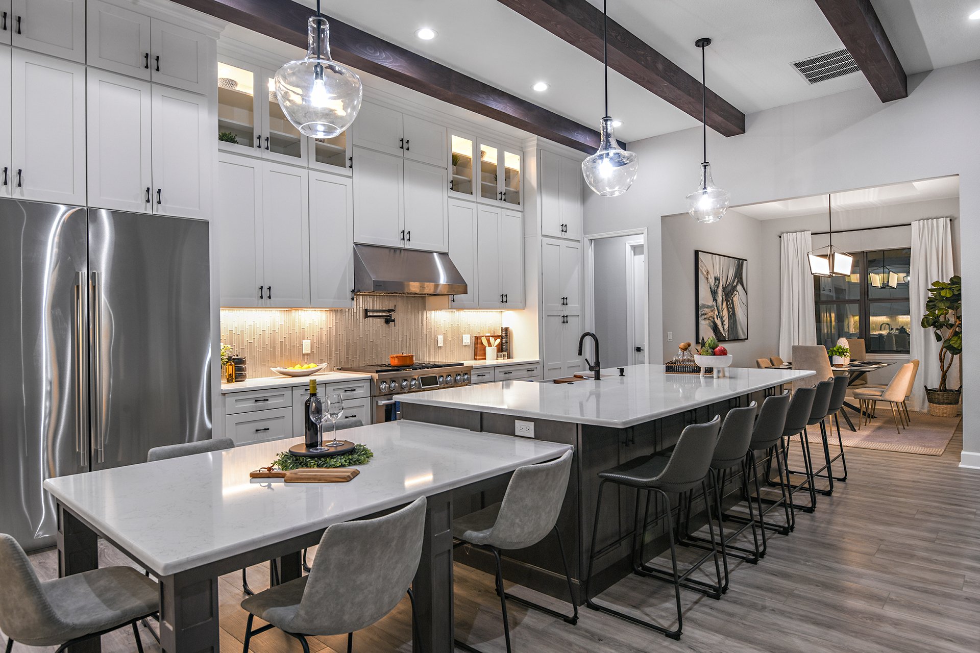 After she lost her husband while he was serving in the Air Force, Tabatha wanted to honor his memory by building the dream home they’d always expected to share together, closer to family in Florida. On the chef’s kitchen wishlist: luxury appliances, custom cabinets reaching the full height of the 12’ ceilings, an enormous island for food prep and entertainment, and a pantry with plenty of storage.